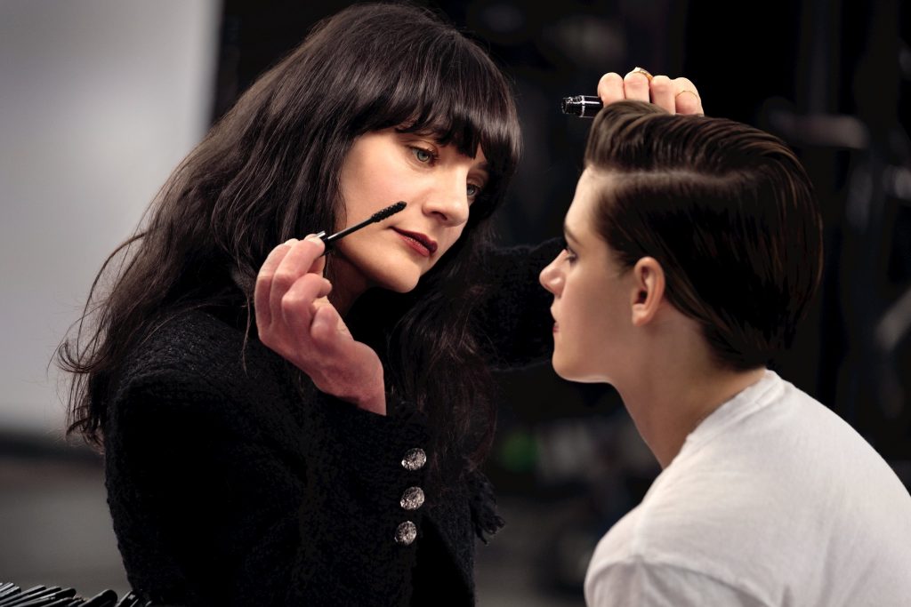 Trước khi kết thúc, Lucia Pica không quên chải mi cho Kristen Stewart bằng cây mascara Le Volume Révolution. Từng lớp mascara chải lên làm hàng mi cong vút, giúp đôi mắt trông to tròn hơn. Nữ diễn viên chia sẻ rằng lông mi của cô như đang được khoác một chiếc áo xa xỉ của Chanel vậy.