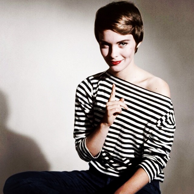 Nữ diễn viên Jean Seburg là mẫu mực của vẻ đẹp huyền bí ở thời cô với kiểu tóc pixie ôm lấy gương mặt làm nổi bật đường nét hoàn hảo.