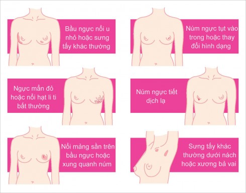 e. Núm vú/Ngực co rút – Ngực tiết dịch bất thường – Màu da vùng ngực thay đổi