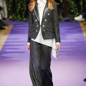 Bên cạnh đó, người xem không thể không nhận ra sự tấn công dữ dội của menswear trên sàn catwalk, không loại trừ bộ sưu tập của Alexis Mabille. Tuy nhiên, điểm khác biệt của Mabille chính là việc vay mượn phần thân áo trước của trang phục tuxedo làm nét nhấn cá tính trên thiết kế váy, áo bằng chất lụa bóng. Quần tây ống rộng, mũ fedora rộng vành và những bộ jumpsuit dài tối màu hay họa tiết sọc ca rô cũng góp phần làm bật lên nét nam tính và mạnh mẽ cho bộ sưu tập.