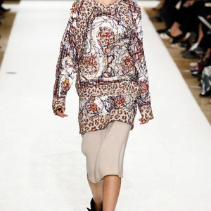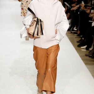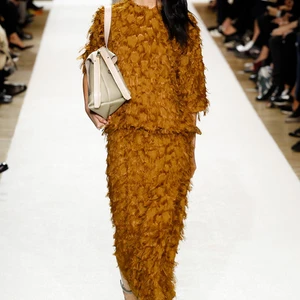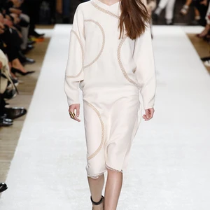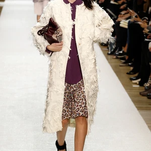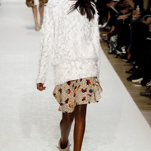 Chất liệu và kết cấu bề mặt vải đa dạng luôn là điểm mạnh của Chloé; trong bộ sưu tập lần này, yếu tố ấm áp được đặc biệt chú ý và ứng dụng nhiều hơn. Điển hình như các mẫu áo khoác dài màu pastel hay những chiếc áo giả lông thú họa tiết da báo, sọc rằn. Bắt nhịp với sự trở lại của fringe (tua rua), Keller khéo léo nhấn nhá nhiều lớp tua rua mỏng trên áo khoác, sweater và bộ đầm rời màu vàng nghệ.