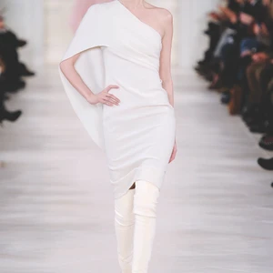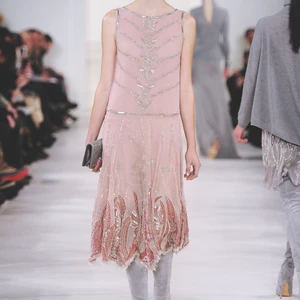 Những đường cắt may sắc sảo tưởng chừng góc cạnh nhưng khi kết hợp với kết cấu phong phú và một bảng màu lãng mạn từ xám ngọc trai đến hồng phấn cũng mềm mại nữ tính hơn.