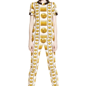 Nữ rapper sử dụng hình ảnh logo của Versace, cặp chiếc chìa khóa Hy Lạp cổ, cùng huy chương vàng chói và những con chữ Sanskrit (một loại chữ cổ) in chồng chéo lên nhau có chủ đích, biến hóa đầy sáng tạo. Tất cả tạo nên 19 mẫu thiết kế góc cạnh, đầy năng lượng.