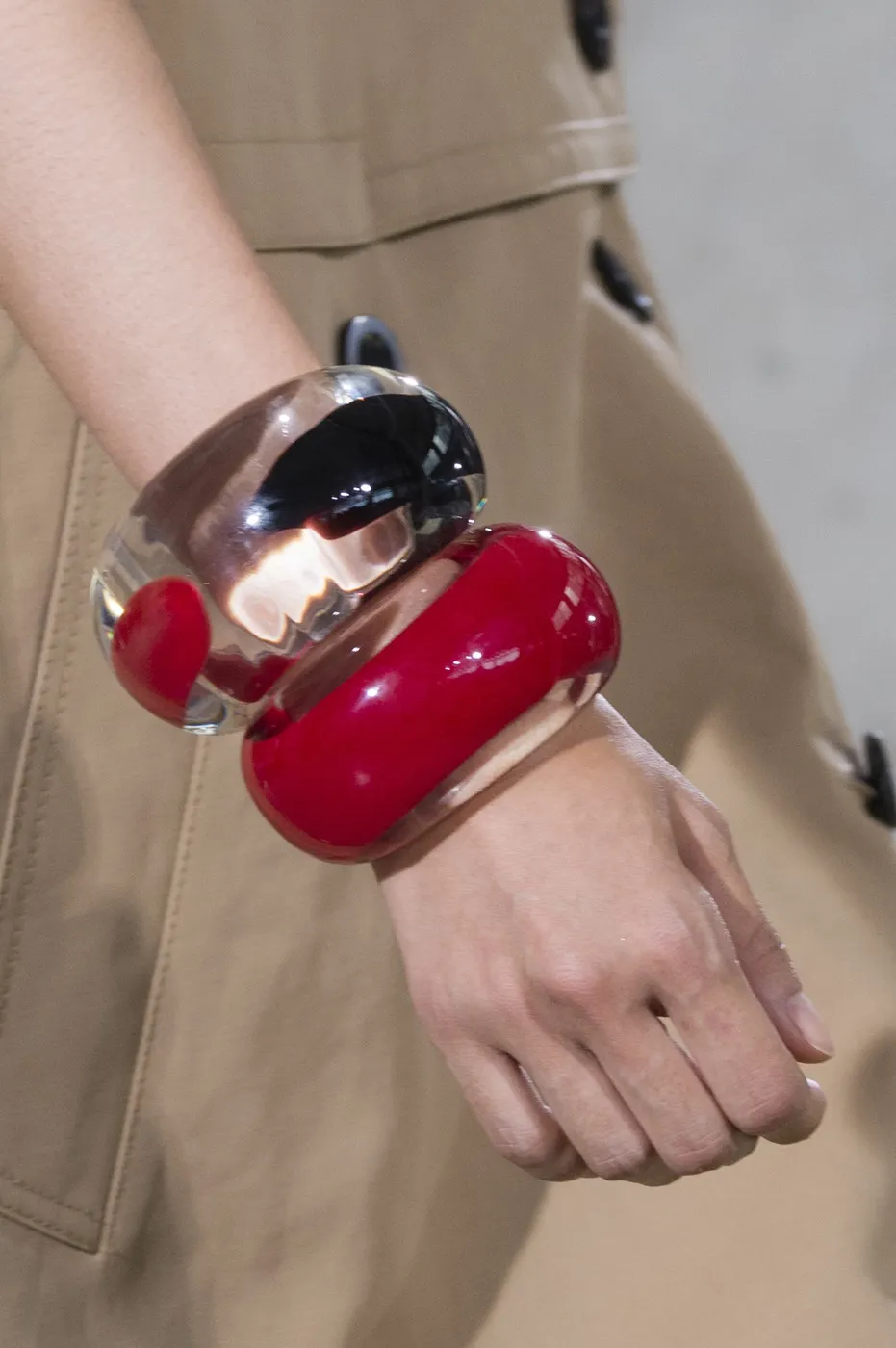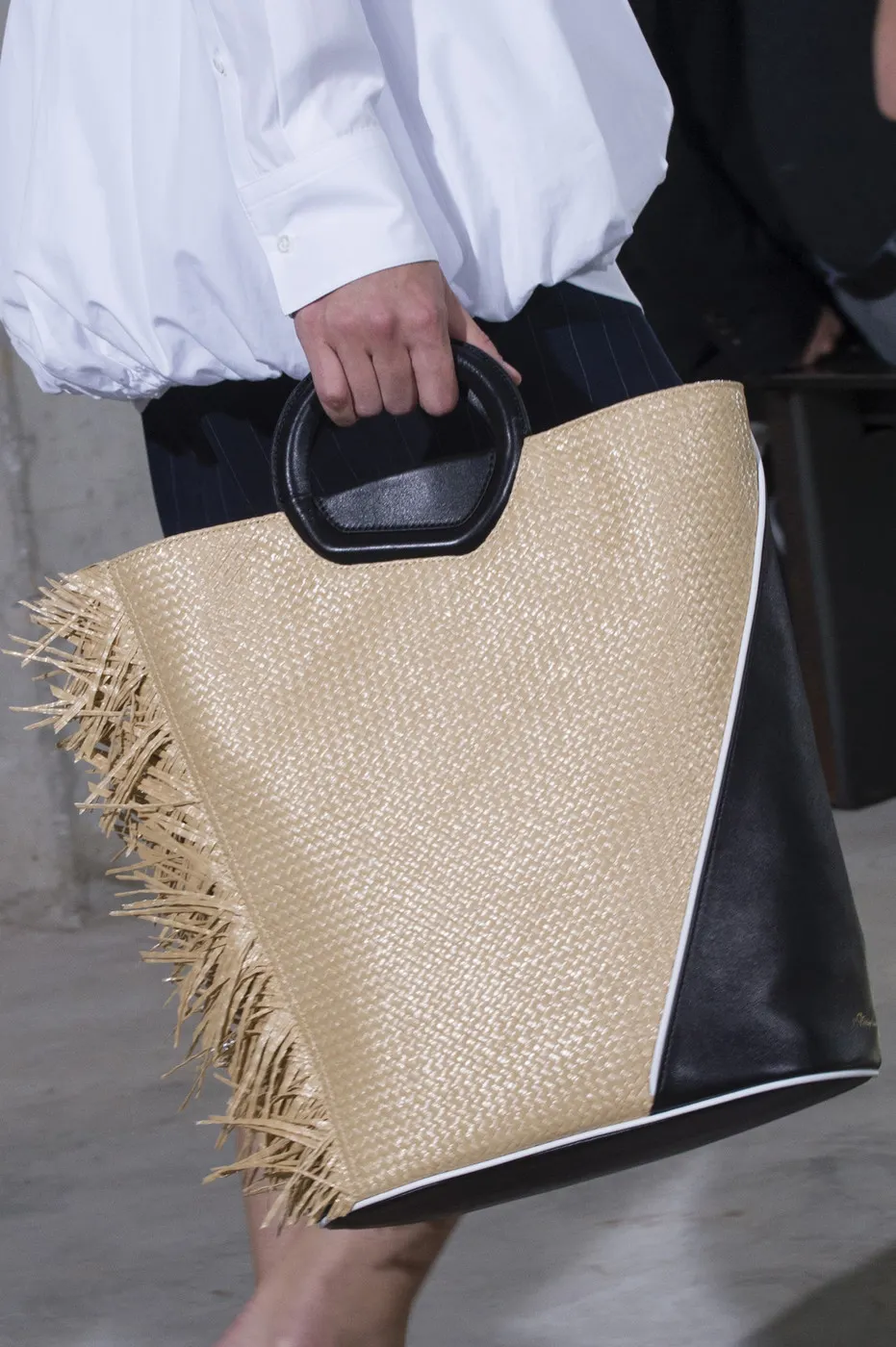 Tất nhiên sẽ không thể không nhắc đến phụ kiện; chiếc túi handbag 3.1 mới lấy cảm hứng từ quả bóng bowling với dây đeo chéo, tạo hứng khởi và nguồn năng lượng mới cho khách hàng .việc sử dụng chất liệu đan lát vào thiết kế túi cũng làm kích thích trí tò mò của nhiều người xem.Đôi sandals với chi tiết kim loại giũ hai ngón chân và giày boot hoàn thiện hơn cho trang phục nằm trong Bst 3.1 Phillip Lim Spring 2018.