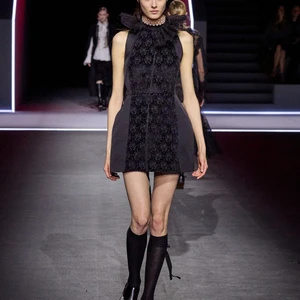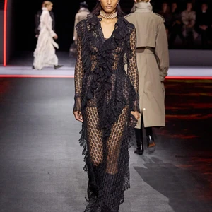Chiếc áo thun “J’adore Dior” được nâng cấp với các miếng ren nữ tính, trở thành một tuyên ngôn về sự tiếp nối. Các thiết kế váy đầm Gothic với những tấm ren chằng chịt như những tác phẩm điêu khắc di động, áo khoác jacquard dài, áo choàng lông Dalmatian và boots cưỡi ngựa đã mang đến một không gian thời trang phá cách. Sự đối thoại giữa ren mỏng manh và nỉ dày dặn, giữa tính nữ quyền và cấu trúc nam tính, tạo nên một ngôn ngữ thời trang đầy sáng tạo.