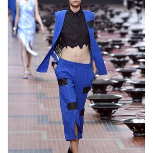 Chúng tôi thích thú với ý tưởng hòa trộn thời trang may đo cổ điển với cuộc sống trên biển. Những chiếc áo khoác có lỗ thông hơi rộng sau lưng để người mặc có thể cảm nhận luồng gió biển, kim tuyến in hay kim tuyến hai mặt, áo hở eo thêu thùa mô phỏng nhịp điệu những con sóng và áo khoác đi xe môtô Kenzo, là những mẫu thiết kế nổi bật trong bộ sưu tập.