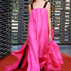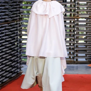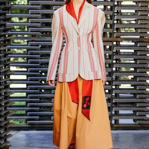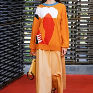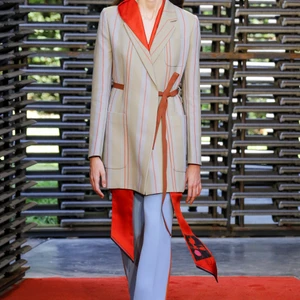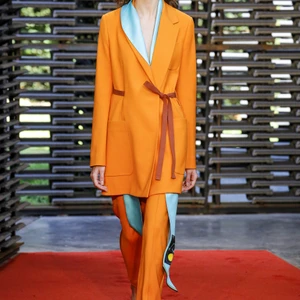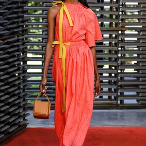 BST Roksanda Xuân – Hè 2019 được trình diễn tại Serpentine Pavilion được thiết kế bởi kiến trúc sư trẻ người Mexico, Frida Escobedo. Những bức tường với cấu trúc đan xen lạ mắt, tông màu sắc lạnh hiện đại từ gạch mái của Anh tạo nên sự tương phản hoàn hảo cho bộ sưu tập với tông màu nóng chủ đạo của Roksanda. Sàn diễn cũng được phủ một lớp cát đỏ, phối hợp tuyệt vời với bảng màu với các tông màu nổi bật như saffron (vàng cam), nâu hay cam đất terracotta được kết hợp theo phong cách color block độc đáo, nổi bật.