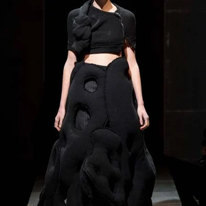 Bộ sưu tập nổi bật với những chiếc áo đan len khổng lồ màu xám lông chuột và đen, quấn quanh hay trùm kín cả đầu và phần trên cơ thể. Hình thù kì dị đa dạng từ hình xoắn ốc đến những nút thắt to treo lủng lẳng vô định hai bên vai. Được biến hóa và ứng dụng trên tất cả các thiết kế, những chiếc tay áo này tạo nên một cảm giác vô hồn đến không tưởng. Đặc biệt nhất là 2 mẫu thiết kế che hẳn toàn thân và mặt người mẫu, chỉ khoét lỗ tròn to, hé lộ phần giữa ngực, đi kèm tất chân len màu xám nhạt.