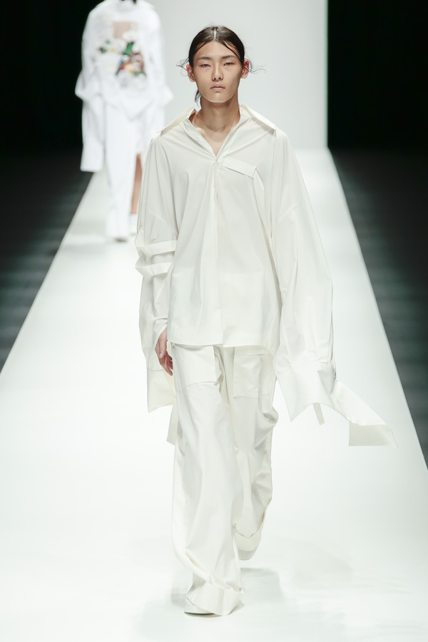 Công Trí luôn đánh số thứ tự cho các BST chính thức của anh, và mùa xuân này, số 10 đẹp đẽ được ra mắt tại Tokyo Fashion Week, tuần lễ thời trang hàng đầu châu Á. BST số 10 với tên gọi “Em Hoa”, Công Trí khám phá chính mình qua các thể nghiệm mà bấy lâu anh ít chạm tới. Đó là phom dáng quá khổ, quy tắc bất đối xứng, phép cường điệu và hình ảnh avant-garde. Ngay cả cách xử lý chất liệu lần này cũng ít màu Công Trí hơn hẳn. Anh để bề mặt vải tự nhiên, không đính kết lấp lánh, in hoặc can thiệp đột phá; tất cả dồn cho những mảnh ghép chủ đề ở phía sau trang phục.