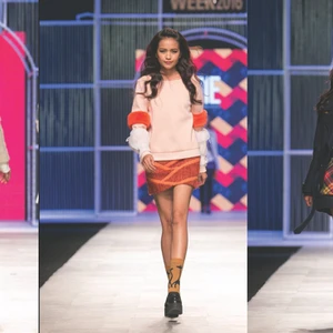 Ngoài ra, màu sắc từng tấm vải còn được NTK trẻ lựa chọn tinh ý sao cho phù hợp với tiết trời se lạnh đầu đông của miền Bắc và vẫn có thể phối layer một cách hoàn hảo thể hiện qua gam màu ấm áp như: đỏ đậm, xanh đậm, vàng mù tạc… Bên cạnh đó, phụ kiện đặc trưng của các cô gái dân tộc vùng cao là trang sức bạc nguyên chất như kiềng, hoa tai cho đến nút áo bạc đều được NTK trẻ đính kết lên trang phục như một món trang sức.