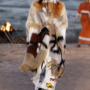 Phụ kiện nổi bật nhất là những chiếc mũ cao bồi miền Tây, dàn mẫu đồng loạt mang mũ có họa tiết mô phỏng lại từ hang động tiền sử. Những đôi boots đen hầm hố không thể lấn lướt được giày bệt, sandal bằng phẳng dựa theo các cảm giác thiên nhiên bảo bọc nhưng cũng thách thức sự thích của con người.