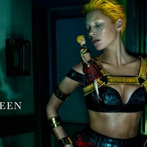 Qua lăng kính của nhiếp ảnh gia kì cựu Steven Klein, Kate Moss xuất hiện với mái tóc ngắn pixie màu vàng rực, trang phục chiến binh, cùng một con búp bê được thiết kế giống y hệt cô.