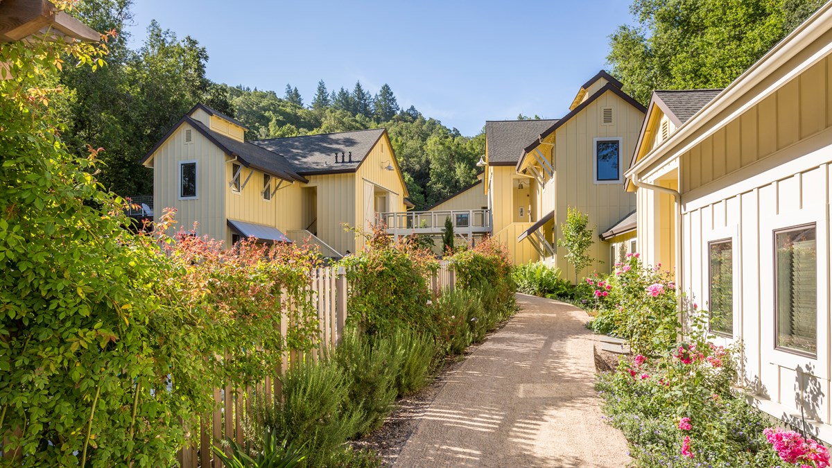 Nằm trong khu rừng của thung lũng sông Nga, Farmhouse Inn là một khu phức hợp lãng mạn, nên thơ với hệ thống nhà nghỉ riêng biệt có màu vàng kem bao quanh trang trại mang phong cách Barnyard sang trọng. Farmhouse Inn gồm có 25 phòng spa riêng biệt, trong đó, mỗi phòng đều có lò sưởi cỡ đại, bồn tắm sử dụng xà phòng hữu cơ như một nơi ẩn náu thiên đường dành cho những người đang yêu; cùng đội ngũ nhân viên thân thiện, sẵn sàng hỗ trợ du khách khi cần thiết. Ngoài ra, khi đến đây, nàng và chàng có thể đăng ký tham gia các tour tham quan hầm rượu vang nếu một trong hai yêu thích thức uống này hoặc thưởng thức bữa tối lãng mạn dưới ánh nến lung linh tại các nhà hàng nổi tiếng trong vùng.