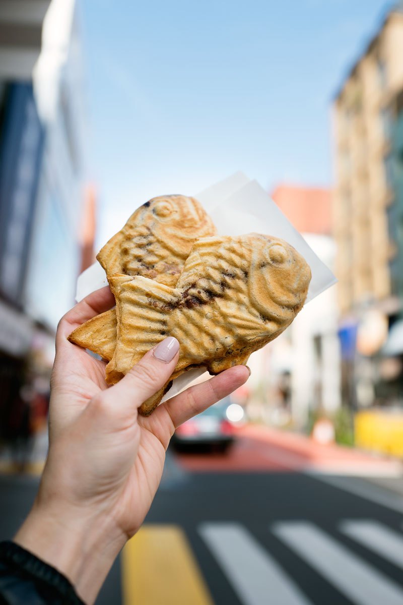 Bạn sẽ tìm thấy cửa hàng bán Taiyaki khắp thành phố Tokyo, bởi đây là một trong những món ăn vặt được các bạn trẻ yêu thích nhất. Với hình dáng là những chú cá bé xinh với lớp vỏ mềm mại cùng nhân đậu đỏ thơm ngọt ngào, chắc chắn bạn sẽ bị món bánh nướng này làm mê mẩn.