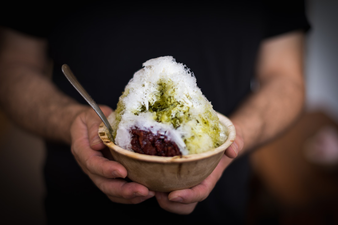 Kakigori đích thị là món ăn yêu thích nhất vào mùa Hè. Là món tráng miệng mát lạnh được dùng ngay sau bữa ăn chính, kakigori mang hương vị thanh mát với các loại si-rô dâu, trà xanh, caramel hoặc chocolate với topping ở trên là trái cây tươi. Đặc biệt, kakigori sẽ được thêm vào bánh nếp dẻo đặc trưng của Nhật và rưới thêm chút sữa đặc phía trên.