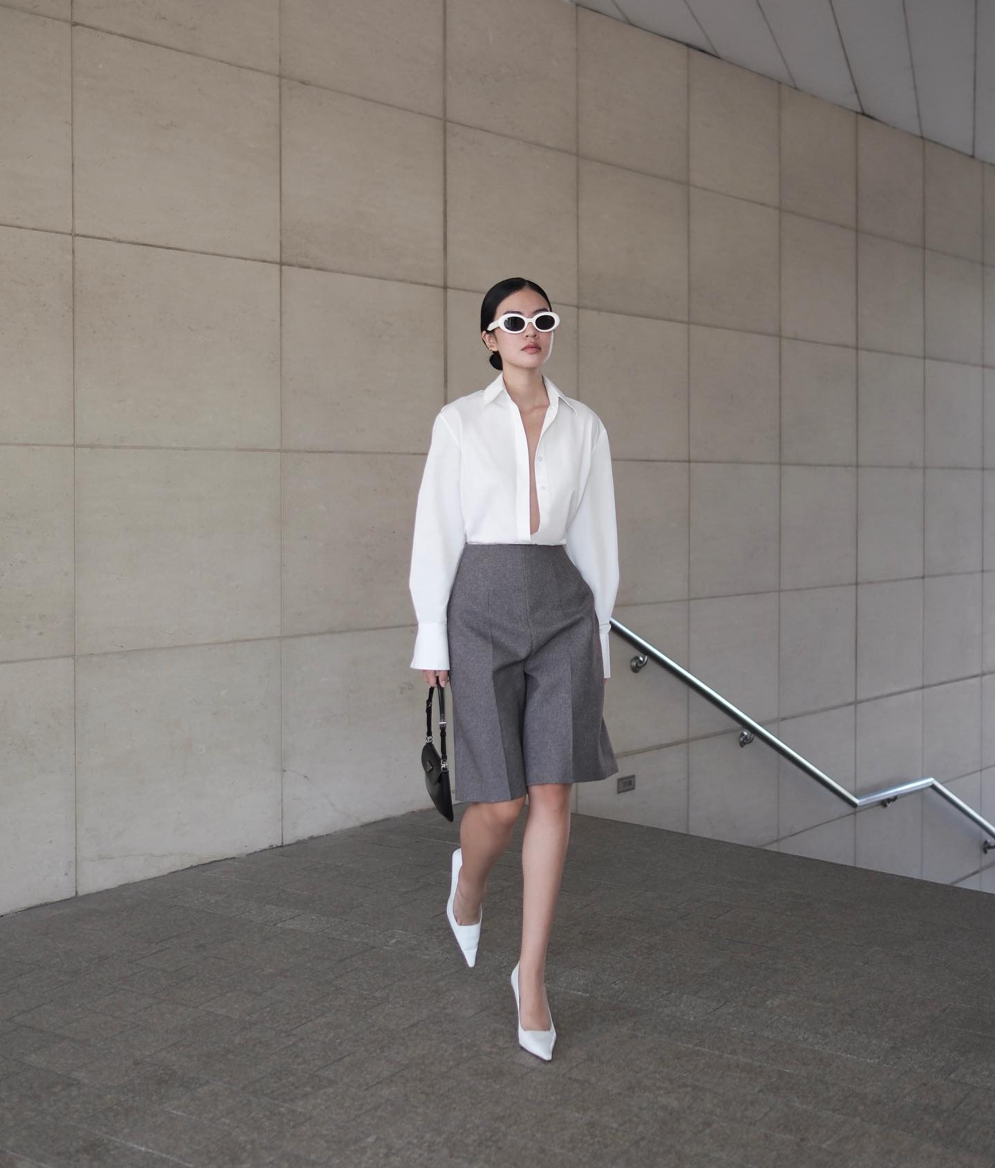 Mùa Hè chính là thời điểm hoàn hảo để mang chiếc quần tây dáng lửng tái xuất. Với những cô nàng công sở yêu thích sự cá tính, thì đây là món đồ thay thế hoàn hảo cho những bộ suit cứng nhắc bởi phom dáng rộng rãi mang tinh thần trẻ trung, năng động cùng độ dài vừa đủ thanh lịch. Công thức phối quần tây dáng lửng màu ghi cùng sơ mi sáng màu tạo nên sức hút đặc biệt của sự tương phản.