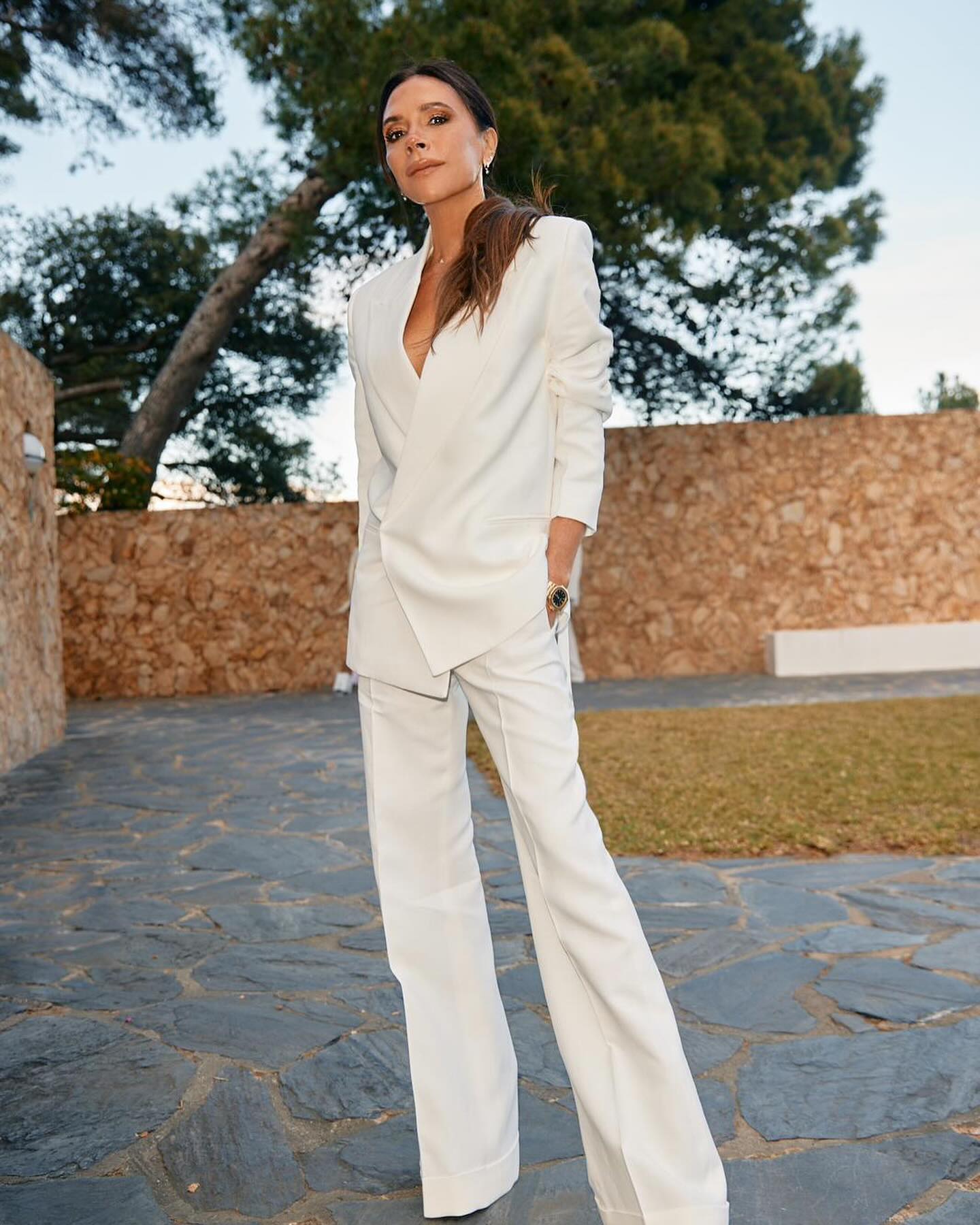 Victoria Beckham cũng là bậc thầy trong việc phối suit với phom dáng rộng. Cô thường chọn blazer dài và quần thả lỏng giúp tổng thể thanh lịch nhưng vẫn toát lên vẻ thanh thoát. Đây chính là bí quyết của phong cách “rich mom” – không bó buộc nhưng luôn tinh tế. Victoria cũng chú trọng vào chất liệu, cô chọn các loại vải dày dặn để suit luôn giữ được form dáng. Vợ David Beckham ưa chuộng kiểu tóc thẳng suôn mượt, gọn gàng với makeup tông nude để tạo cảm giác quyền lực, trưởng thành. Một lớp trang điểm nhẹ nhưng tinh tế cũng là điểm nhấn khiến phong cách của cô trở nên nổi bật hơn.