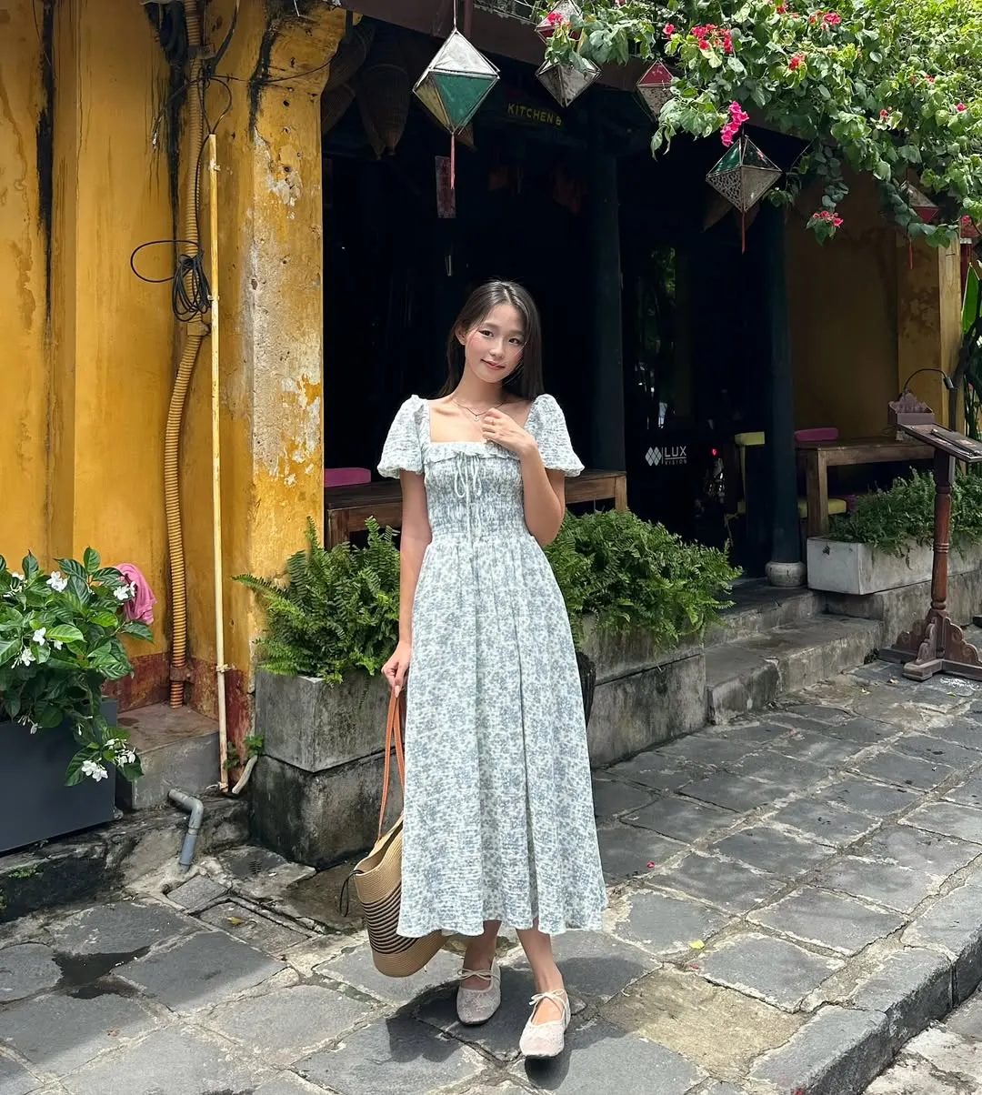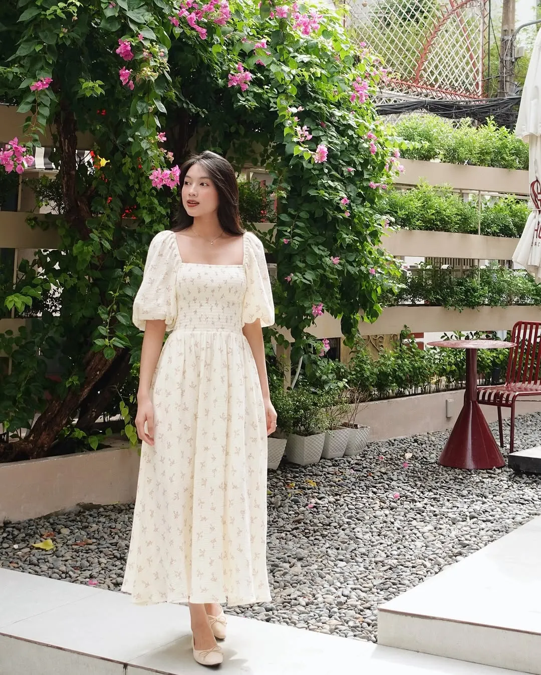 Những chiếc đầm tay bồng mang đậm chất lãng mạn của phong cách đồng quê “Prairie Chic” nhưng đã được tinh chỉnh để loại bỏ sự nặng nề thường thấy. Kiểu đầm này thường sử dụng chất liệu cotton, linen hoặc vải poplin có độ đứng vừa phải để giữ phom tay áo phồng nhẹ, không quá to, kết hợp với chi tiết smocked ở thân trên hoặc cổ vuông tinh tế. Phom đầm ôm vừa phải ở eo và xòe nhẹ ở chân váy midi, hoàn hảo cho các nàng ứng dụng trong các buổi dạo phố hay picnic. Cách phối đồ hiện đại nhất là với giày Mary Jane hoặc giày búp bê đơn giản để tạo nên vẻ ngoài vừa cổ điển vừa sắc sảo. Tay bồng ngày nay được may ngắn hoặc dùng chất liệu mềm rủ hơn để tạo sự thanh thoát, kết hợp đường cắt midi A-line thay vì maxi quá dài, tránh cảm giác cũ kỹ và nặng nề của thời trang vintage.