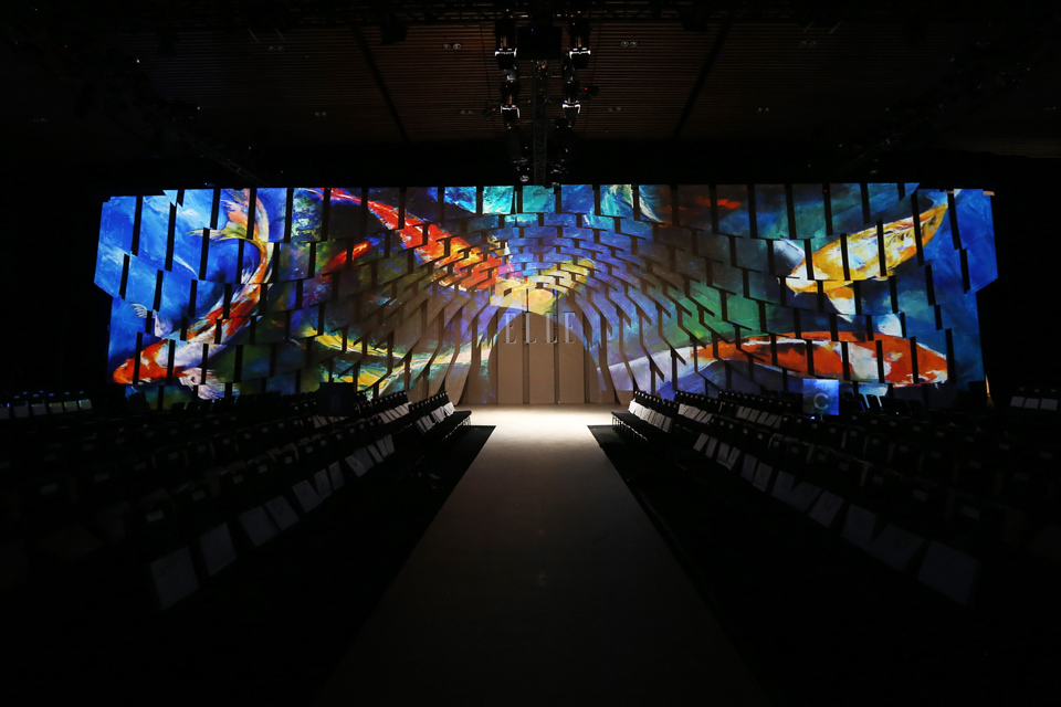 Cao Trung Hiếu bật mí rằng anh chỉ chọn nylon trắng để làm nền cho công nghệ trình chiếu ánh sáng. Những hiệu ứng ánh sáng cộng hưởng với kết cấu của nylon sẽ tạo nên không gian rất “tương lai”, đồng thời tôn vinh vẻ đẹp của từng bộ sưu tập. Người xem sẽ nhìn thấy ánh sáng chuyển động, phản chiếu rất nhiều hình ảnh và màu sắc, tựa như dải ngân hà hoặc con ngươi trong mắt của chúng ta. Anh cũng cho biết, vì tất cả đều được thực hiện bằng tay, hoàn toàn thủ công nên cần lực lượng thợ rất đông và tốn rất nhiều thời gian thi công. Chính điều đó khiến cho sân khấu lần này giống như một tác phẩm nghệ thuật sắp đặt thủ công, mang tính công sức của con người nhiều hơn yếu tố công nghệ.