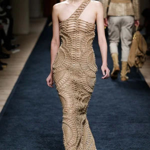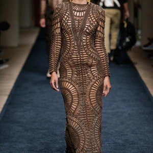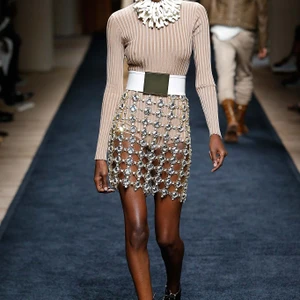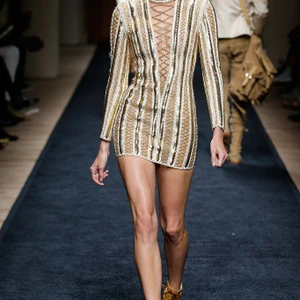 Họa tiết đan, bện phải được nhắc đến một cách trân trọng, vì chính nó đã tạo nét đặc trưng cho nhà mốt này. Thế nhưng không thể không khen ngợi sự biến hóa tài tình của Rousteing mặc dù nó xuất hiện xuyên suốt, từ áo khoác, áo xuyên thấu, giày đến phụ kiện nhưng không tạo cảm giác ngấy, ngược lại còn khiến khán giả thích thú, đơn giản vì chúng quá đẹp. Những chi tiết khác cũng đắt giá không kém chính là những chiếc khóa trên nền túi hộp, những chiếc đinh tán được đính tỉ mỉ…
