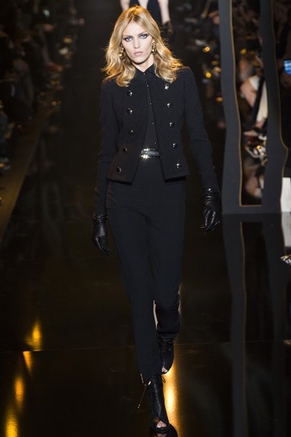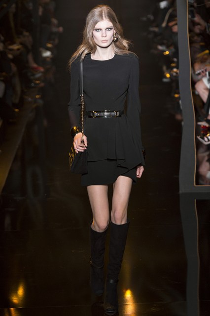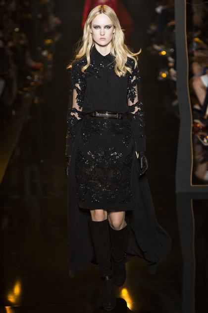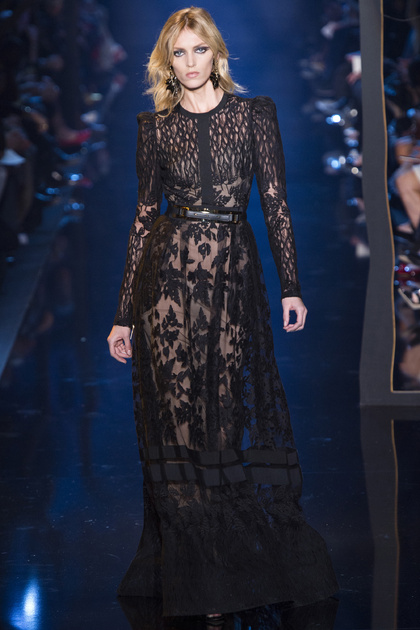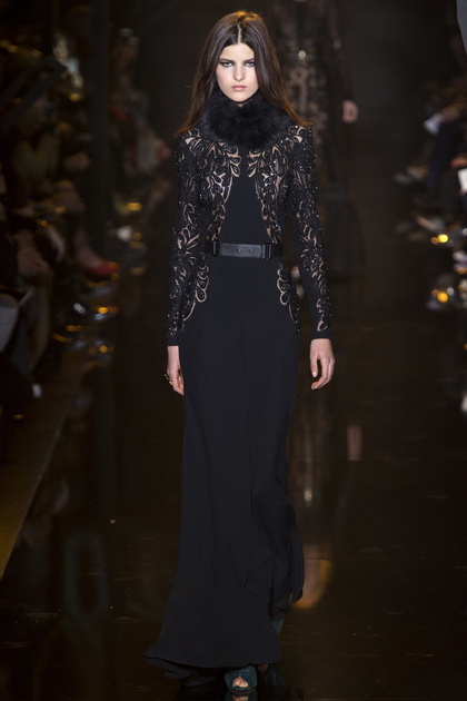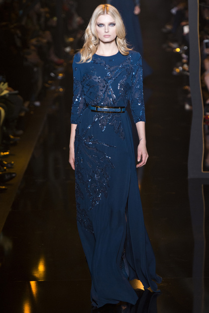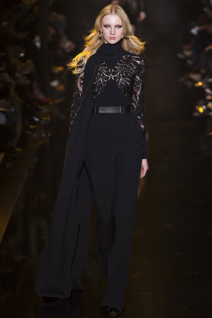 Chẳng thế mà những bộ sưu tập (BST) thu đông của ông lúc nào trông cũng lạnh lẽo và thực tế với những gam màu trầm đến khắc nghiệt. Chưa hết, giọng hát của Marilyn Manson trên tông nhạc dồn dập hòa lẫn với những sải bước của người mẫu, trong không gian tối thăm thẳm của rừng cây khẳng khiu càng nhấn mạnh sự nghiệt ngã mà Elie Saab mang đến cho BST này. Saab không sống trong những câu chuyện cổ tích mang phong cách lãng mạn. Đêm hội hoàng cung của Lọ Lem đã điểm 12 giờ, Bạch Tuyết cũng hốt hoảng rời xa cung điện để buông mình lẩn trốn, một thế giới ngày xửa ngày xưa của Elie Saab không lung linh sắc sáng của mây trời, cỏ hoa. Những nàng công chúa giờ trở thành những chiến binh, tự đứng dậy và vượt qua mùa đông lạnh lẽo không cần đến phép màu của bà tiên.