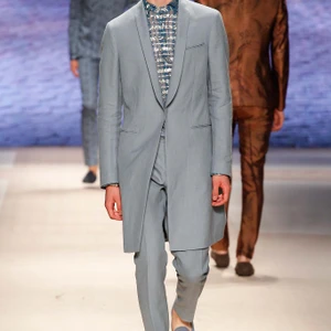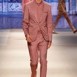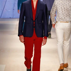 Khi các bộ sưu tập thời trang nam Xuân-Hè 2016 của các thương hiệu khác thường tập trung vào dáng uyển chuyển, bồng bềnh của trang phục bằng cách sử dụng chất liệu vải tơ tằm, thì thương hiệu Etro lại mang đến những trang phục với hoa văn may chìm (jacquard patterns), vải ánh kim, và kỹ thuật tạo độ bóng mỏng cho các mẫu thiết kế. Xuyên suốt bộ sưu tập là quần Tây bó lửng màu xanh trứng chim Cổ Đỏ (robin’s egg blue), màu hồng đất (dusty rose) và màu vàng đất (orche). Mở đầu bộ sưu tập là thiết kế gam màu nâu đất – sắc màu của nguồn sống, và cứ như thế các mẫu thiết kế tiếp theo là sự chuyển đổi của sắc cầu vồng được ví như sắc hoa đua nở dịp Xuân-Hè. Các mẫu thiết kế còn có hoạ tiết praisly đặc trưng của thương hiệu Etro, mô phỏng cách điệu hình dáng lông thú hay những viên kim cương lấp lánh trên nền vải sáng bóng.