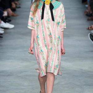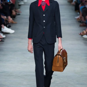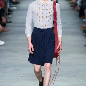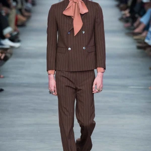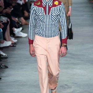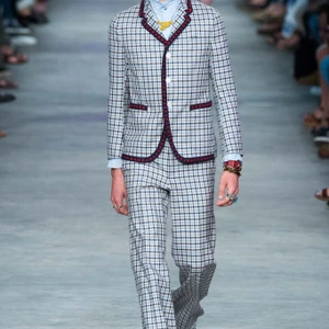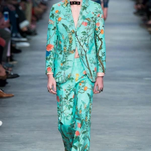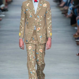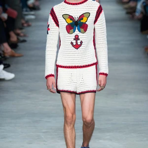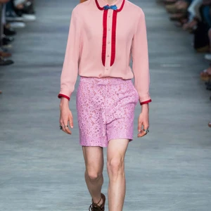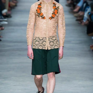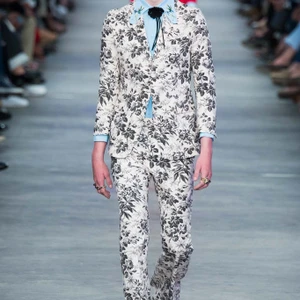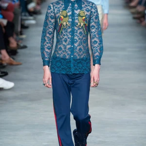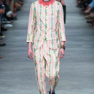Ngắm nhìn bộ sưu tập thời trang nam Xuân-Hè 2016 của Gucci, người ta có cảm giác như đang mở cửa đến với vườn Xuân đầy sắc hoa rực rỡ. Có thể nói, chi tiết cổ của các thiết kế trong bộ sưu tập dành cho nam này được nhà thiết kế Alessandro Michele đặc biệt chăm chút khi lần lượt những mẫu nơ với nhiều kích cỡ khác nhau, chi tiết cổ nhọn khác biệt, đến các loại cổ tròn được trang trí hệt như chiếc vòng cổ xuất hiện tràn ngập trên bộ sưu tập này. Ngoài vườn hoa Xuân khoe sắc, nhà thiết kế Alessandro Michele còn mang hình ảnh chim và bướm được thêu cực kỳ tinh xảo trên áo sơmi, áo tròng cổ, áo khoác. Bộ sưu tập gồm nhiều mẫu áo sơmi, áo tròng cổ tay dài, quần tây dài, quần ngắn cùng các bộ suit, pyjama bắt mắt.