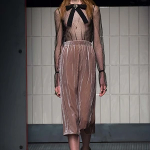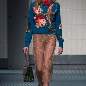Bộ sưu tập Thu-Đông 2015/16 của Gucci đánh dấu sự trở lại của nhà thiết kế Alessandro Michele. Có vẻ ngoài xuề xòa với mái tóc dài ngang vai, Michele lại là một người rất tinh ý về thời trang khi mang lại cảm giác tò mò thông qua những thiết kế gợi cảm, táo bạo, mang đậm xu hướng lưỡng tính.