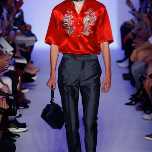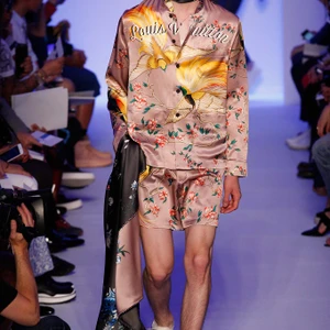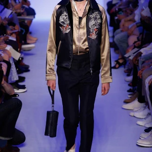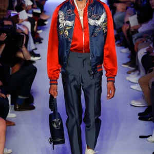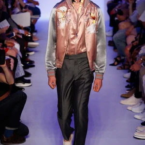 Có thể nói, bộ sưu tập thời trang nam Xuân-Hè 2016 của thương hiệu thời trang cao cấp Louis Vuitton là “cuộc nổi loạn” của mẫu áo khoác lưu niệm từ chất liệu silk (silk souvenir jacket). Hàng loạt những dạng áo này được nhà thiết kế Kim Jones phối cùng chất liệu đa dạng như silk, denim, da bò Kobe. Jones không ngại ngần thể hiện tâm hồn du ngoạn của bản thân khi mạo hiểm pha trộn nhiều chi tiết mang tính văn hoá của các miền đất mà anh đã đặt chân đến. Từ hình ảnh con sếu tại Nhật Bản, loài chim của thiên đường tại Indonesia, loài khỉ tại Trung Quốc đến những hình sọc của bộ lạc thuộc Đông Nam Á đều được thêu tay tỉ mỉ, thể hiện sự đẳng cấp của thương hiệu thời trang Louis Vuitton.