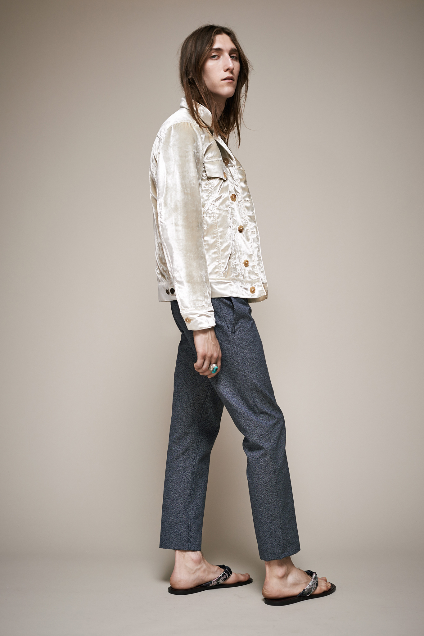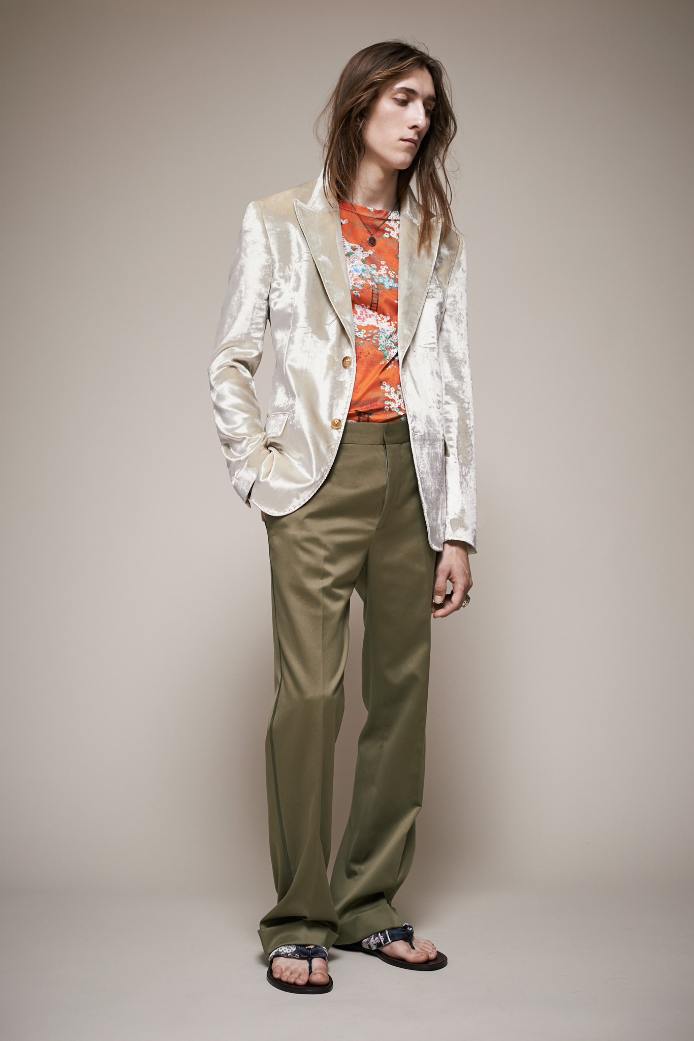 Những chiếc áo họa tiết hoa có chút nữ tính, những chiếc quần ống rộng mang phong cách pijama với chất lụa nhẹ nhàng được kết hợp mạnh mẽ với những chiếc áo khoác quân đội tạo hiệu ứng thời trang đáng ngạc nhiên. Sự ấm áp của mùa Xuân còn được thể hiện qua những chiếc áo len màu sắc ngọt ngào. Bên cạnh đó, không thể không nhắc đến những bộ cánh lịch lãm, nam tính nhưng không hề cứng nhắc với quần baggy và áo blazer phảng phất sắc khói, những chiếc áo choàng quân đội lạnh lùng vá đắp phá cách. Ở mảng phụ kiện, Karl kết hợp trang phục cùng những đôi dép xỏ ngón, đem đến một cái nhìn phóng khoáng, cởi mở đúng với tinh thần của bộ sưu tập.