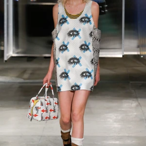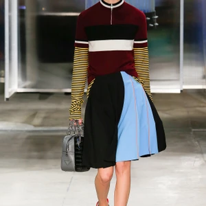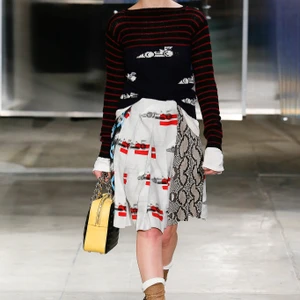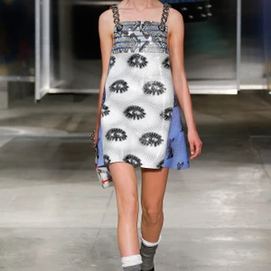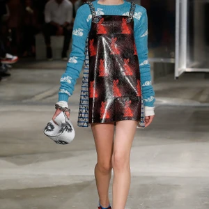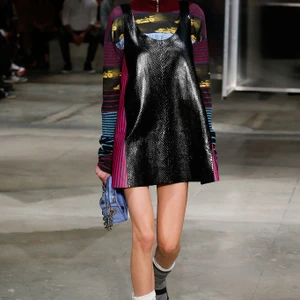 Đầu tiên, chúng ta dễ dàng nhận ra sự cai trị của nữ giới trong bộ sưu tập lần này. Những chi tiết ấn tượng như trang điểm mắt mèo, giày bít cao gót kết hợp cùng vớ qua cổ chân ngay lập tức làm cho chúng ta liên tưởng đến Chicklettle và Concetta, biểu tượng những cô gái quậy phá của đạo diễn John Waters trong bộ phim kinh điển Female Trouble những năm 70. Những người phụ nữ rắc rối này thực sự đã được tái hiện không chỉ một lần trong bộ sưu tập. Váy xếp ly, váy bút chì, áo len sọc, váy suôn chữ A – những item luôn có trong tủ đồ của các quý cô thập niên 60 -70 được làm mới bằng chất liệu da và họa tiết da rắn. Những chiếc áo khoác tuyệt đẹp được bao phủ bằng lớp cườm tinh tế, một gợi ý tuyệt vời cho mùa Xuân Hè sắp tới.
