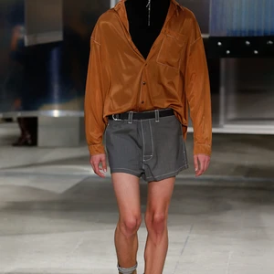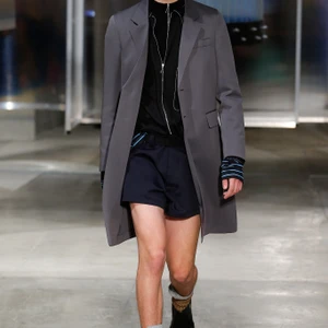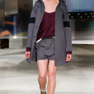 Ở mặt trận của phái mạnh, Miuccia đem đến hình ảnh trẻ trung hơn với quần ngắn, những chiếc sơ mi màu đất nhét vội vào lưng quần, gợi nhớ hình ảnh những chàng trai vội vàng, hơi phủi và bất cần. Miuccia luôn lo lắng về việc thể hiện một chiếc áo sơ mi, bà nhấn mạnh điều đó, thế nhưng lần này, dường như bà đã lấy được lòng những tín đồ khó tính nhất khi hình ảnh phong trần đem đến hiệu ứng bất ngờ. Bên cạnh đó, thiết kế cho nam còn gây ấn tượng với những chiếc áo khoác da trên thắt lưng, dáng rộng, khoét ngực càng làm tăng độ ngầu cho các chàng trai.