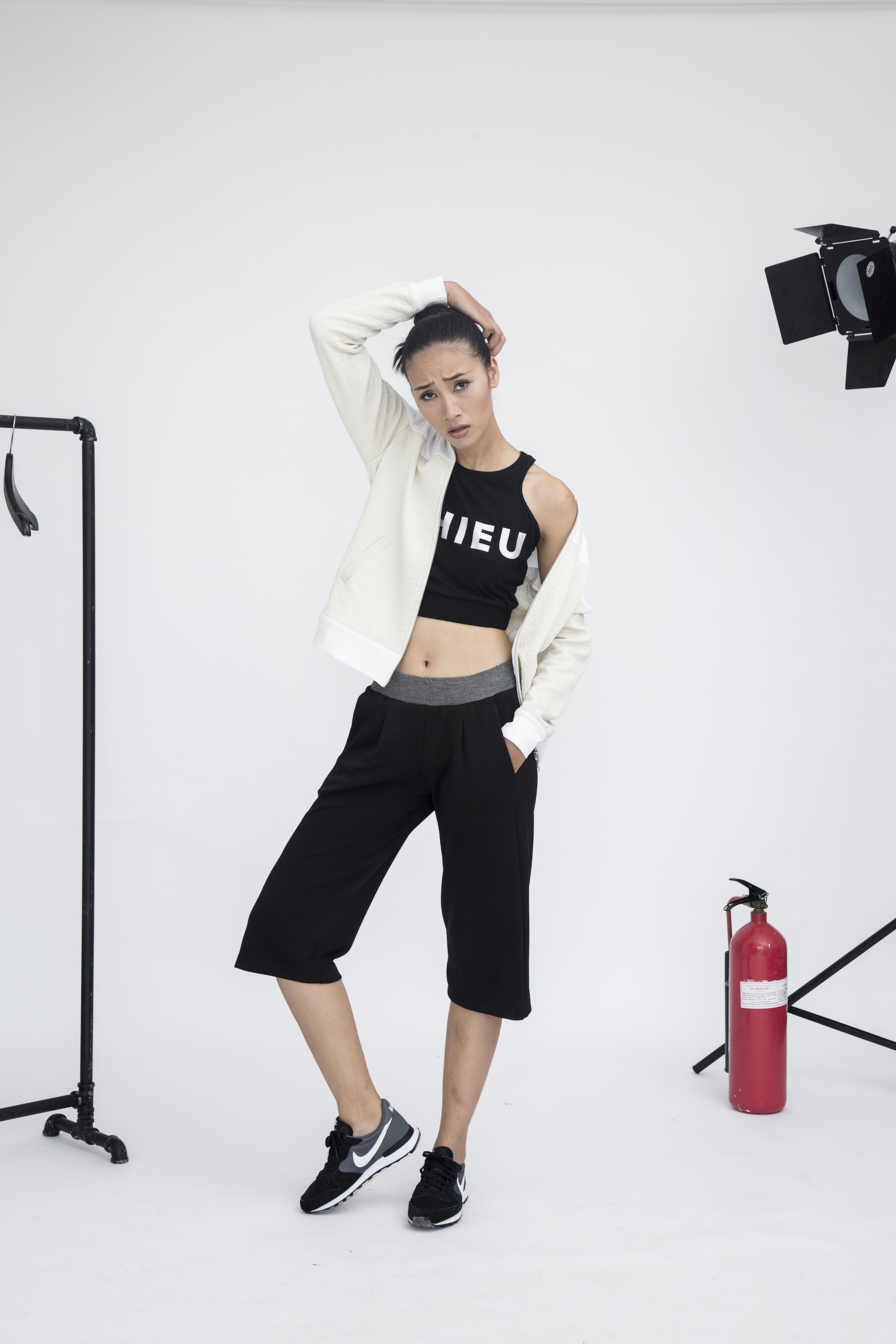 Đúng như cá tính phóng khoáng của mình, Trang Khiếu thể hiện rõ nét năng động và phá cách trên những trang phục tưởng chừng như chẳng liên quan đến nhau. Xu hướng kết hợp giữa váy và giày sneaker được Trang lăng xê nhiệt tình từ streetstyle cho đến BST đầu tay này. Đây cũng là cảm hứng thời trang đang “làm mưa làm gió” trên nhiều sàn diễn quốc tế.