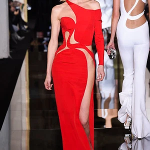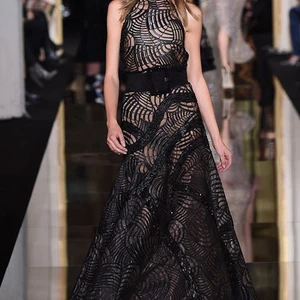 Amber Valletta, người mẫu mở màn cho show diễn Atelier Versace đã khiến khán giả trầm trồ bởi những đường cắt táo bạo vừa khít trên cơ thể của cô. Chiếc váy dạ hội màu đen kiêu sa như được sơn lên cơ thể của Valletta một cách tuyệt hảo. Cùng Elle ngắm nhìn BST Atelier Versace.