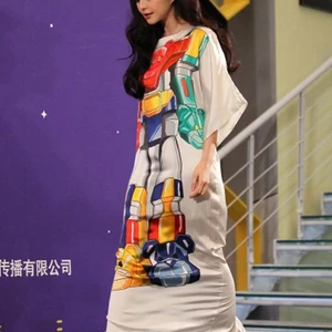 Mặc dù mặc trang phục với gam màu sặc sỡ. Song, thiết kế váy chữ A dài qua gối khiến Phạm Băng Băng trông vẫn sang trọng đầy sức hút