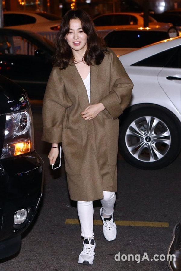Song Hye Kyo khắc phục hạn chế chiều cao bằng lựa chọn trang phục đơn sắc và ít chi tiết.