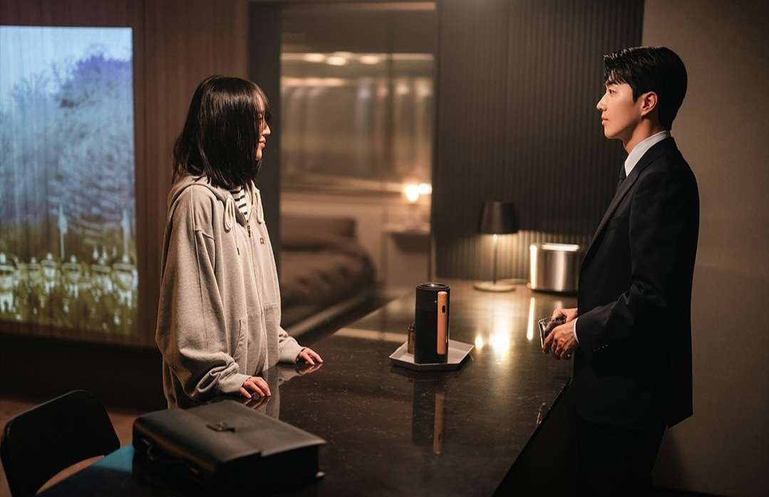 Cũng tại môi trường công sở, nhưng ở những phân cảnh có phần gây cấn và nghiêm túc hơn thì nhân vật sẽ lựa chọn diện những bộ vest hoặc blazer tối màu. Việc thay đổi sắc màu không những tạo dựng được hình ảnh quyền lực của nhân vật mà còn giúp khán giả phần nào hiểu được tâm trạng nhân vật muốn truyền tải.Sự tối giản trong chi tiết trang phục kết hợp với bảng màu trầm tạo nên một phong thái chuyên nghiệp, sắc sảo, nhưng vẫn giữ được nét nữ tính của Shin Hye Sun.