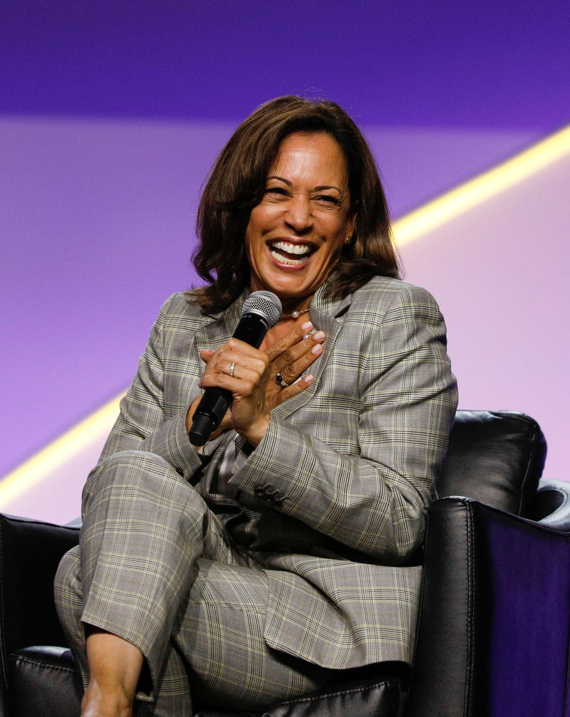 Kamala Harris thể hiện sự bình tĩnh và tự tin tốt nhất khi trung thành khoác trên mình những bộ suit cổ điển tươm tất. Thiết kế tối giản đơn sắc cùng những gam màu xanh lam, đen, đỏ, be hoặc màu kem trung tính, thoải mái ôm trọn vóc dáng khi được may đo cẩn thận. Điểm xuyến nhấn nhá bên trong với những chiếc áo lụa, chéo cổ và nơ bướm cùng tông màu thường thấy. Sự linh hoạt trong cách phối áo với quần ống côn, ống loe hay ống đứng giúp bà dễ dàng chuyển đổi phong cách sao cho phù hợp với từng sự kiện. Và tất nhiên, không quên kèm theo một đôi giày cao gót mũi nhọn.