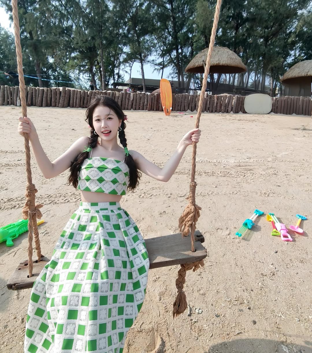 Với tính cách nhí nhảnh và đầy đáng yêu như những cô nữ sinh 18, những bộ trang phục đậm chất học đường như chân váy xếp ly, áo sơ mi trắng hoặc áo gile… được Ngu Thư Hân ưu ái hết cỡ. Nàng tiểu hoa cũng không quên kết hợp trang phục cùng các phụ kiện khác như kẹp tóc, tất dài, hay giày oxford, tạo nên hình ảnh gần gũi nhưng không kém phần cuốn hút. Sự lựa chọn này không chỉ mang lại cảm giác tươi mới, mà còn khéo léo thể hiện tính cách vui vẻ, năng động và có phần tinh nghịch của cô.
