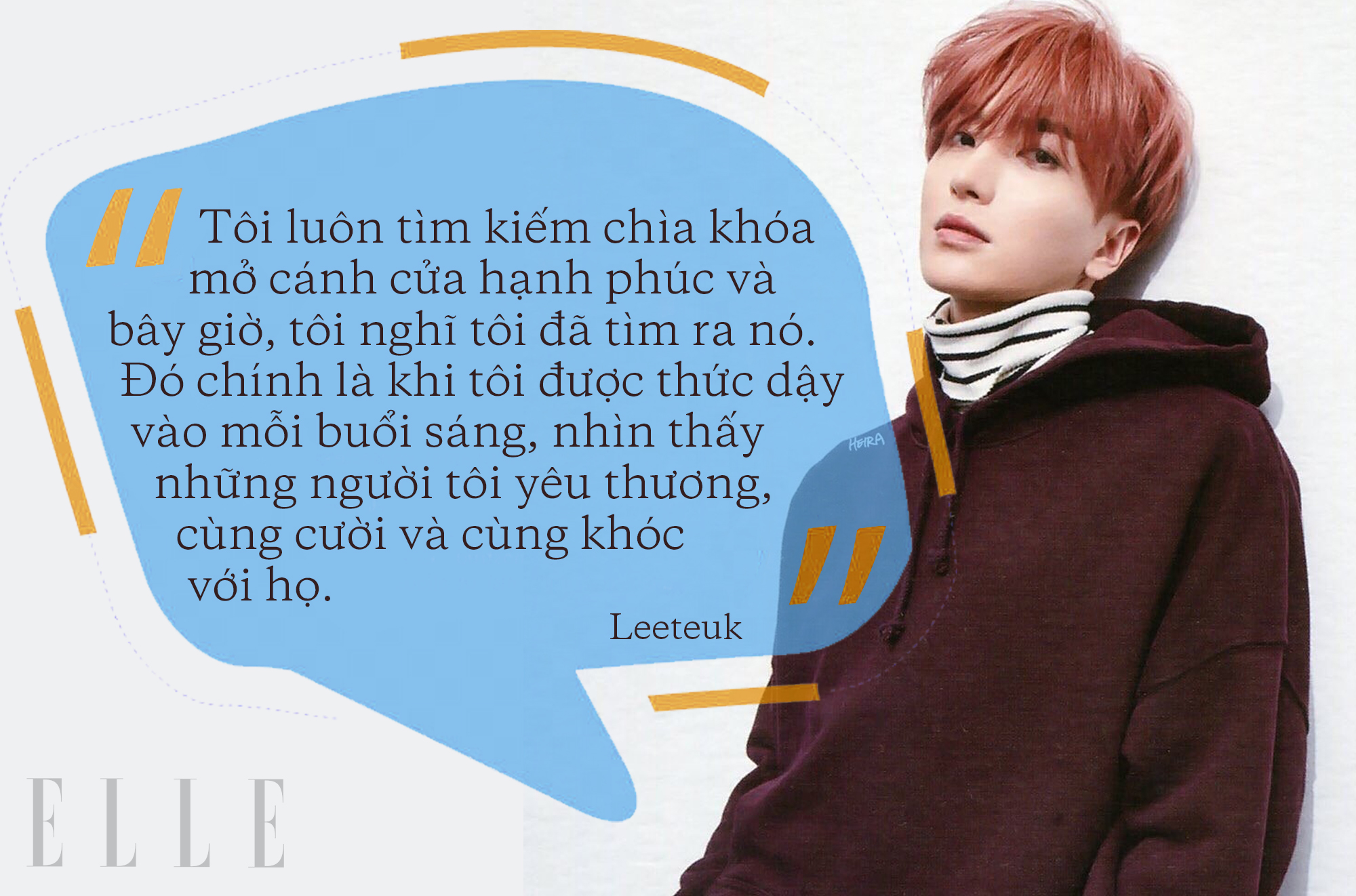Leeteuk, trưởng nhóm Super Junior đã có lần bày tỏ suy nghĩa của mình về định nghĩa “hạnh phúc”: “Cũng như mọi người, tôi muốn có cuộc sống vui vẻ. Tôi luôn tìm kiếm chìa khóa mở cánh cửa hạnh phúc và bây giờ, tôi nghĩ tôi đã tìm ra nó. Đó chính là khi tôi được thức dậy vào mỗi buổi sáng, nhìn thấy những người tôi yêu thương, cùng cười và cùng khóc với họ”.