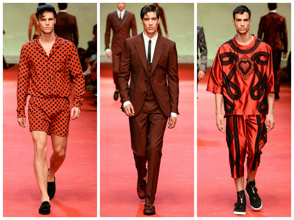Một lần nữa, Dolce & Gabbana không chỉ giới thiệu một bộ sưu tập thời trang mà còn đem đến sự kết hợp thú vị giữa văn hóa, lịch sử và nghệ thuật cắt may điêu luyện. Vẫn là câu chuyện về vùng đất Sicily màu nhiệm, bộ sưu tập Xuân Hè 2015 dành cho nam tái hiện văn hóa Sicily trong giai đoạn 1516 đến 1713, với những ảnh hưởng mạnh mẽ của Tây Ban Nha.