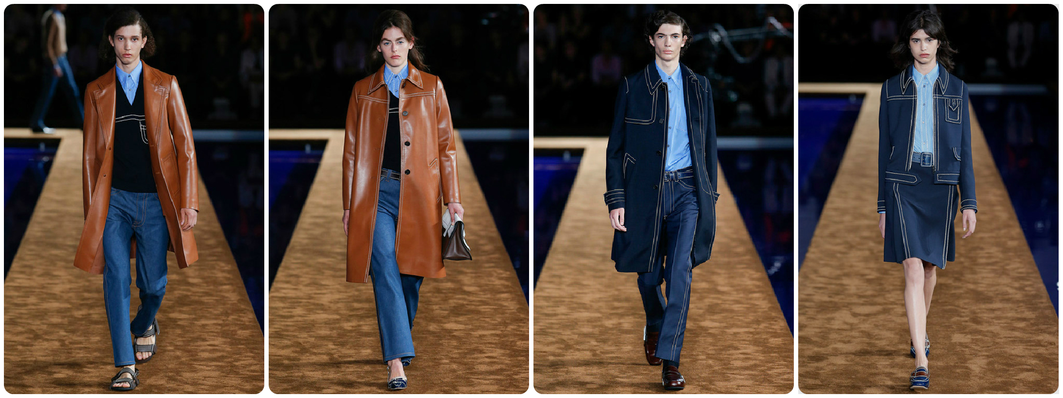 Các thiết kế trong bộ sưu tập này phù hợp cho cả nam và nữ, từ những quần jeans phom rộng thoải mái, áo sweater gam màu trung tính đến hàng loạt áo khoác dài unisex. Miuccia sử dụng những chất liệu cứng cáp như da, jeans, nhấn nhá với đường viền bắt mắt. Bộ sưu tập mang vẻ đẹp cổ điển và tính ứng dụng cao.