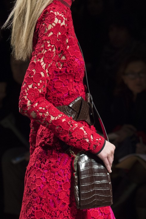 Những mẫu sandals với thiết kế độc đáo, lạ mắt gợi nhớ nghệ thuật điêu khắc (sculpture) được thể hiện qua cách biến tấu chi tiết gót giày là những ô vuông xếp chồng lên nhau trên nền chất liệu da cá sấu, da trăn và da lộn. Cùng chung mạch cảm xúc thiết kế, chi tiết thắt lưng buộc thắt và túi cầm tay làm từ chất liệu lông thú, da cá sấu hứa hẹn là những món phụ kiện IT mùa Thu Đông 2015-16.