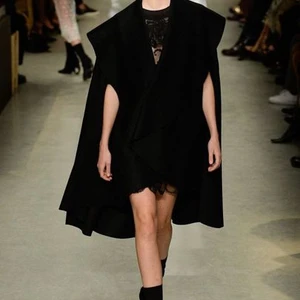Bên cạnh đó, có thể thấy rõ bờ vai là điểm nhấn chính của BST qua những chiếc áo cape có một không hai. Từ chiếc áo cape lông ánh bạc hay ngọc trai sang trọng cho tới chiếc cape đúc sắt mô phỏng bức tượng của Henry Moore, tất cả tạo nên một BST đầy tính nghệ thuật. Tuy BST này của Burberry là see now buy now, những chiếc cape nghệ thuật này không nằm trong danh sách bán sẵn mà sẽ được đặt theo yêu cầu.