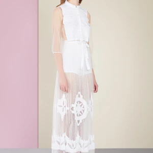 Vẫn giữ phong cách tối giản sang trọng quen thuộc, BST Xuân-Hè của TSE mở đầu với chiếc váy trắng suôn với chiếc khuy bản lớn. Những thiết kế monochrome vẫn là tiêu điểm cho những BST của TSE.