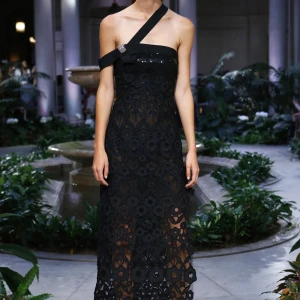 BST Xuân-Hè 2017 của Oscar De La Renta mở đầu với những chiếc váy ren trắng bay bổng cùng mái tóc xẻ ngôi giữa trẻ trung. Với nguồn cảm hứng từ những kỳ nghỉ hè ở Hamptons, BST Xuân-Hè của Oscar De La Renta mang tới những chiếc váy ngắn với đường ruffle ngọt ngào cho tới những bộ đầm được kết đá cầu kỳ sang trọng.