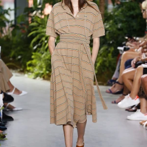 Những chiếc áo sơ mi kẻ sọc được biến hóa trong những thiết kế phối kaki hay váy trễ vai quyến rũ. Chiếc thắt lưng cũng là một điểm nhấn của BST. Chúng không chỉ tạo nên điểm nhấn ở eo mà còn tăng nên sự gợi cảm khi được dùng như những chiếc vòng cổ.