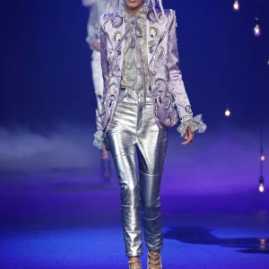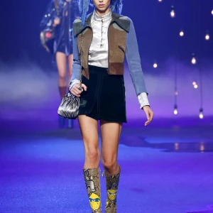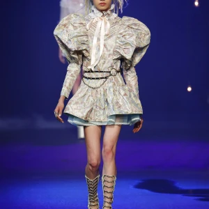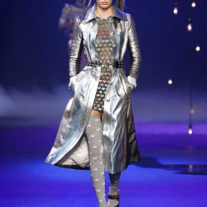 BST chuyển tiếp bởi chiếc váy sequin ánh bạc phủ với chiếc mũ hình Hector – chú chó của Browne và cũng là một hình ảnh quen thuộc của thương hiệu. Hình ảnh của Hector cũng xuất hiện qua những chiếc túi xách trong BST.
