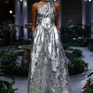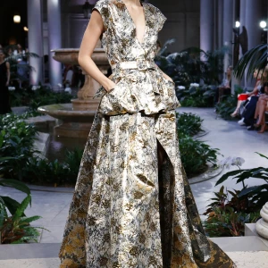 BST của Oscar De Le Renta cũng mang lại một phần cảm hứng Morroco với những chiếc váy jacquard và những hoạ tiết paisleys sang trọng.