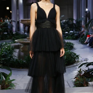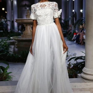 Những thiết kế trong BST của Marchesa mang lại những chuyển động của màu sắc. Từ những bộ váy tulle pha màu độc đáo cho tới những thiết kế váy ánh ngũ sắc lấp lánh theo từng bước chân. Có thể thấy rất rõ những thiết kế váy sheer với tông màu pastel là một phần chủ đạo của BST Xuân-Hè của Marchesa.